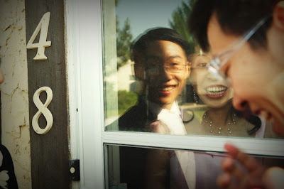 In Chinese tradition, the guys arrived at the bride's house and weren't allowed in until they did some funny things and answered some questions