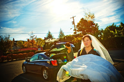 So Merry and I flew out to Vancouver for the family wedding, but we left the black suit and dress at home, because this time we were working! It was pouring when we arrived. The day of the wedding it cleared up! Then it poured the day after. PERFECT timing!